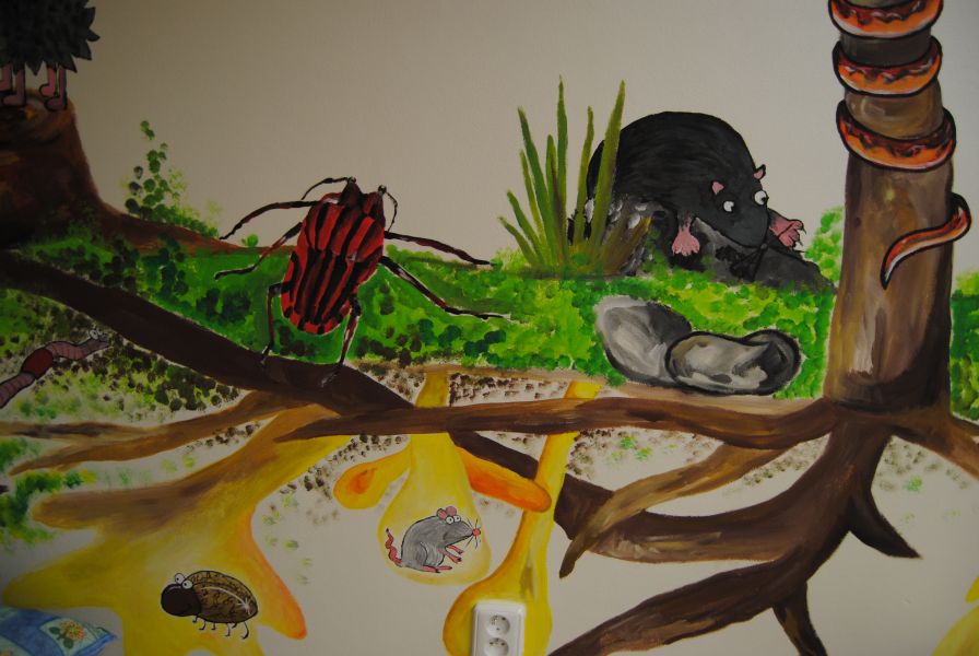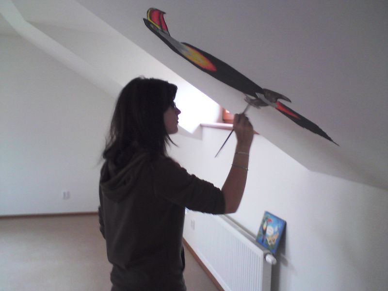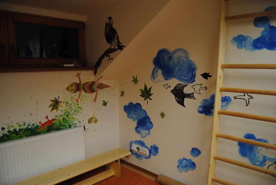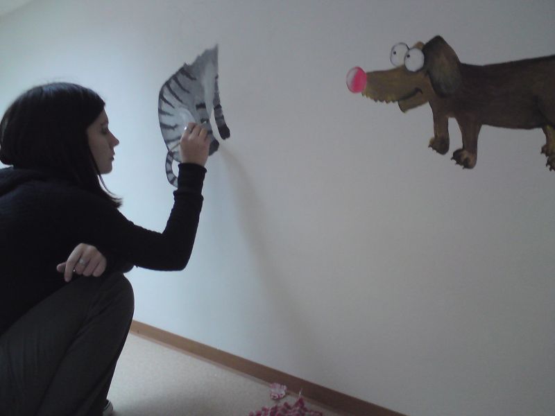 Autorky nástěnné malby při práci a detaily malby